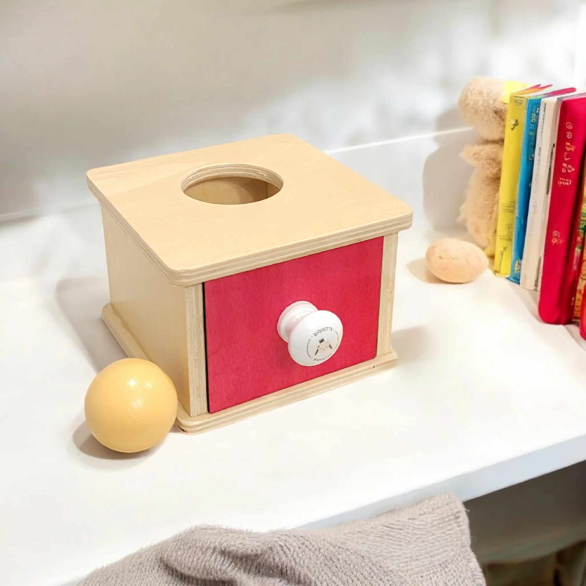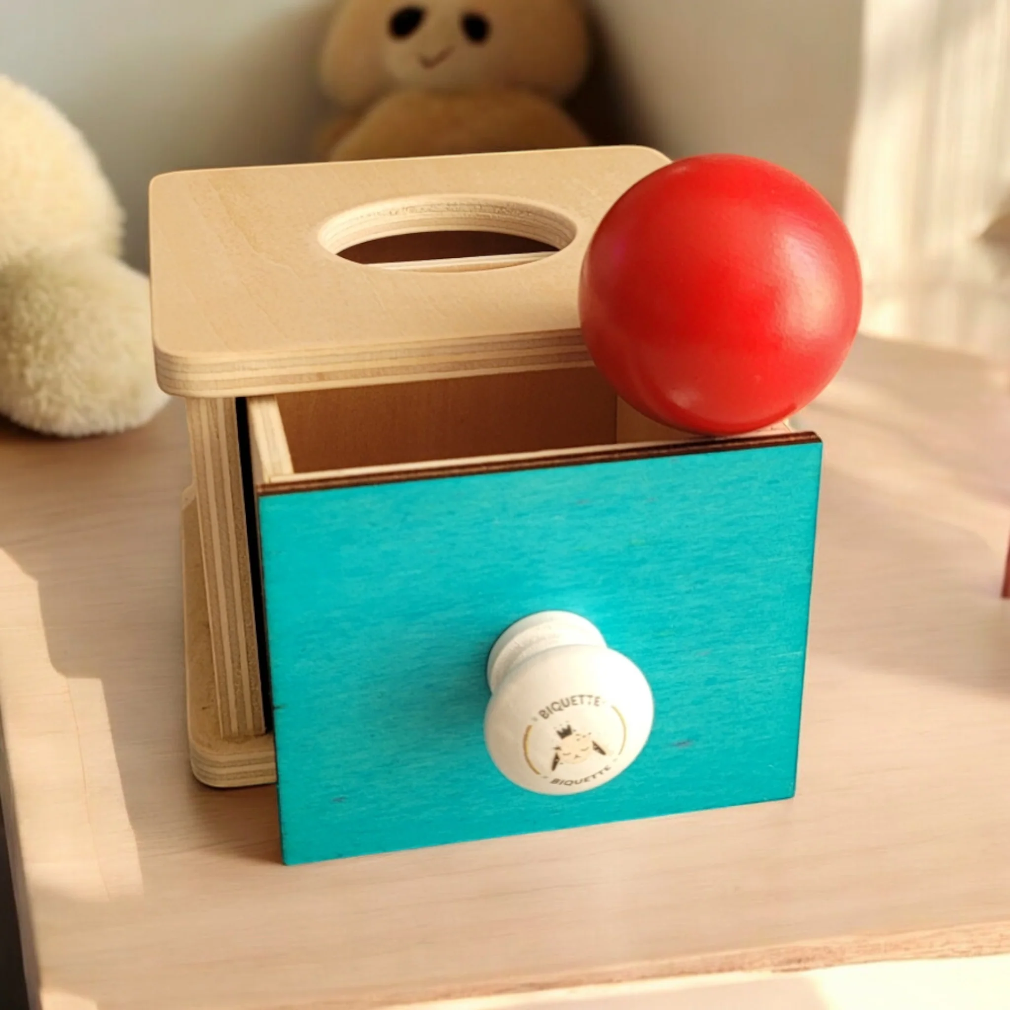 Boîte de Permanence en Bois avec Balle – permanence de l’objet montessori