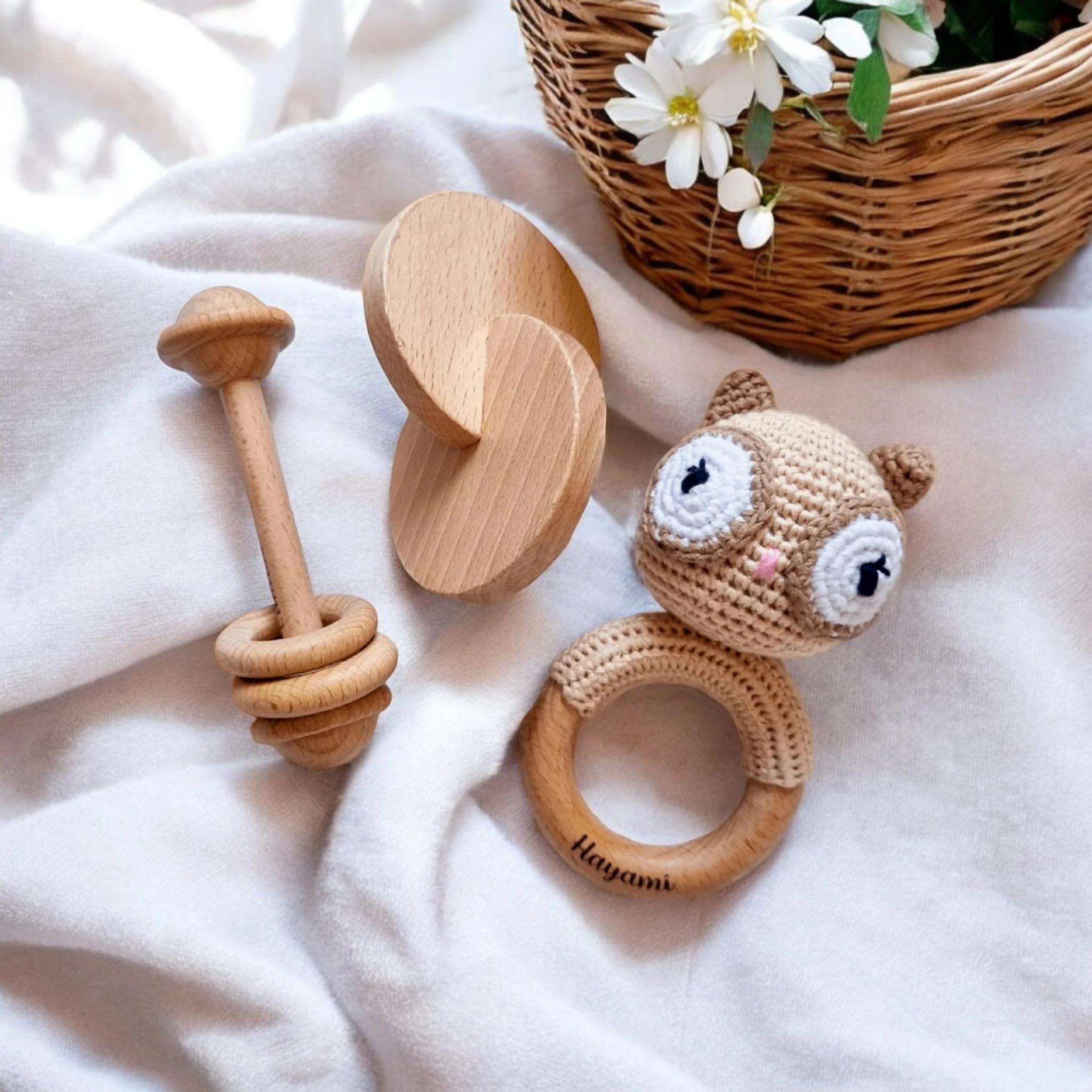 Cadeau de Naissance personnalisé – Jouets en Bois et Crochet