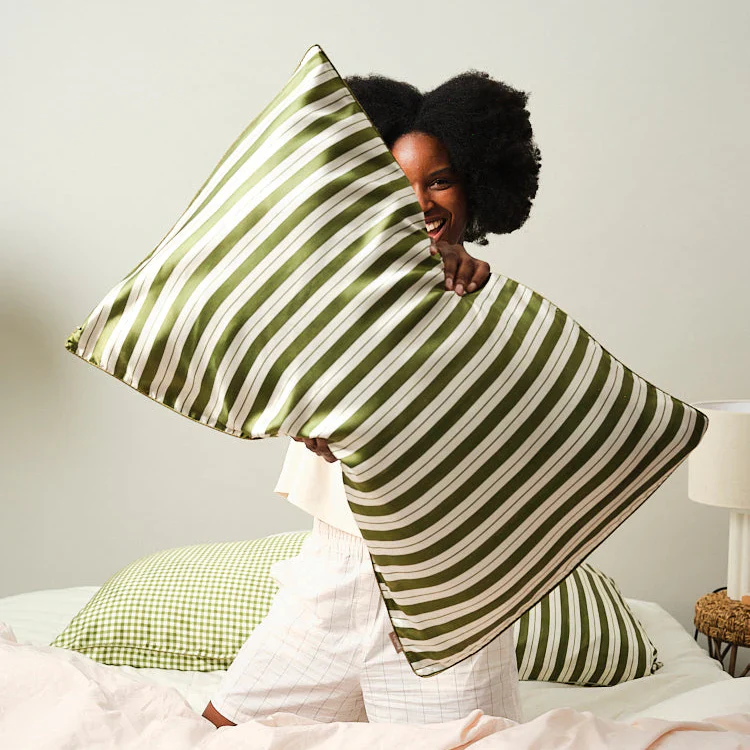 Taie d’oreiller 100% pure soie de mûrier- Rayures vertes 65x65cm