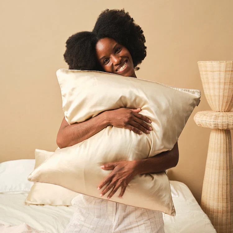 Taie d’oreiller 100% pure soie de mûrier- champagne 65x65cm