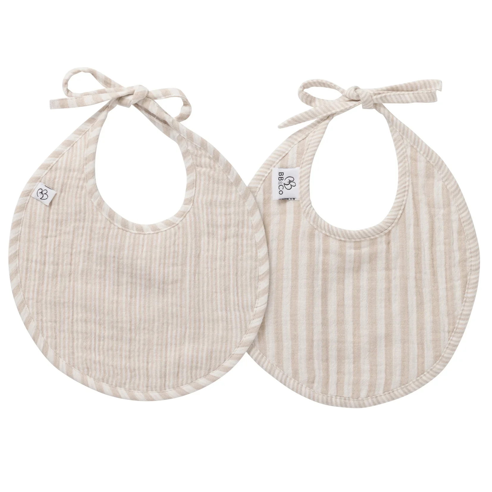 Lot de 2 bavoirs naissance en gaze de coton rayé galet – Soft Stripes