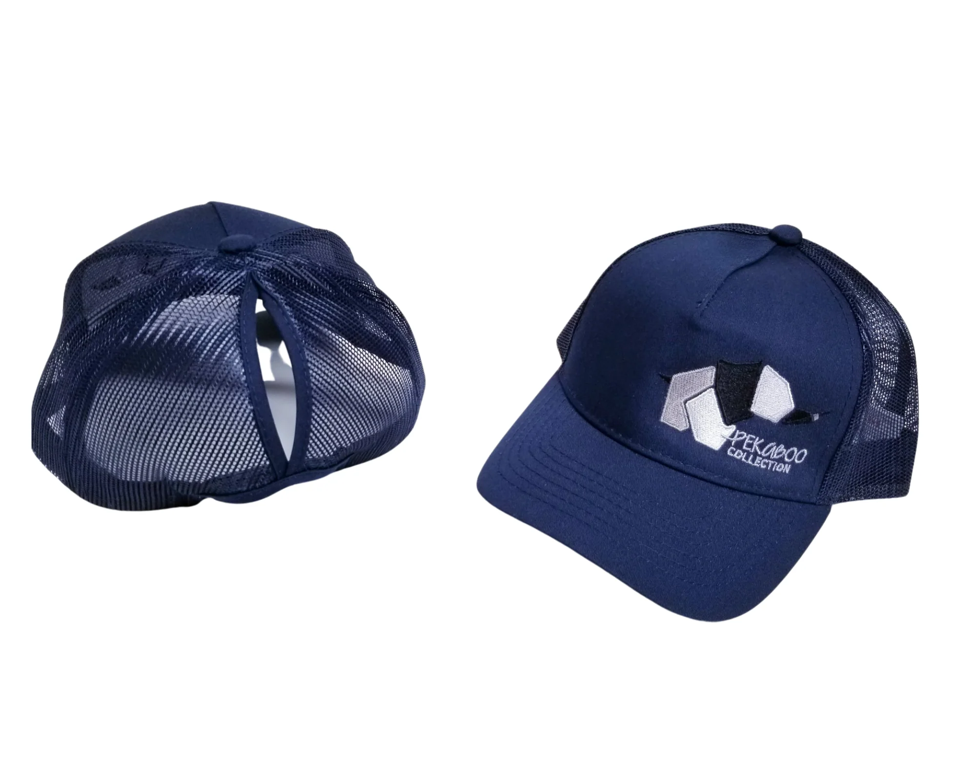 Casquette marine pour femme avec fente pour chignon – Logo gris