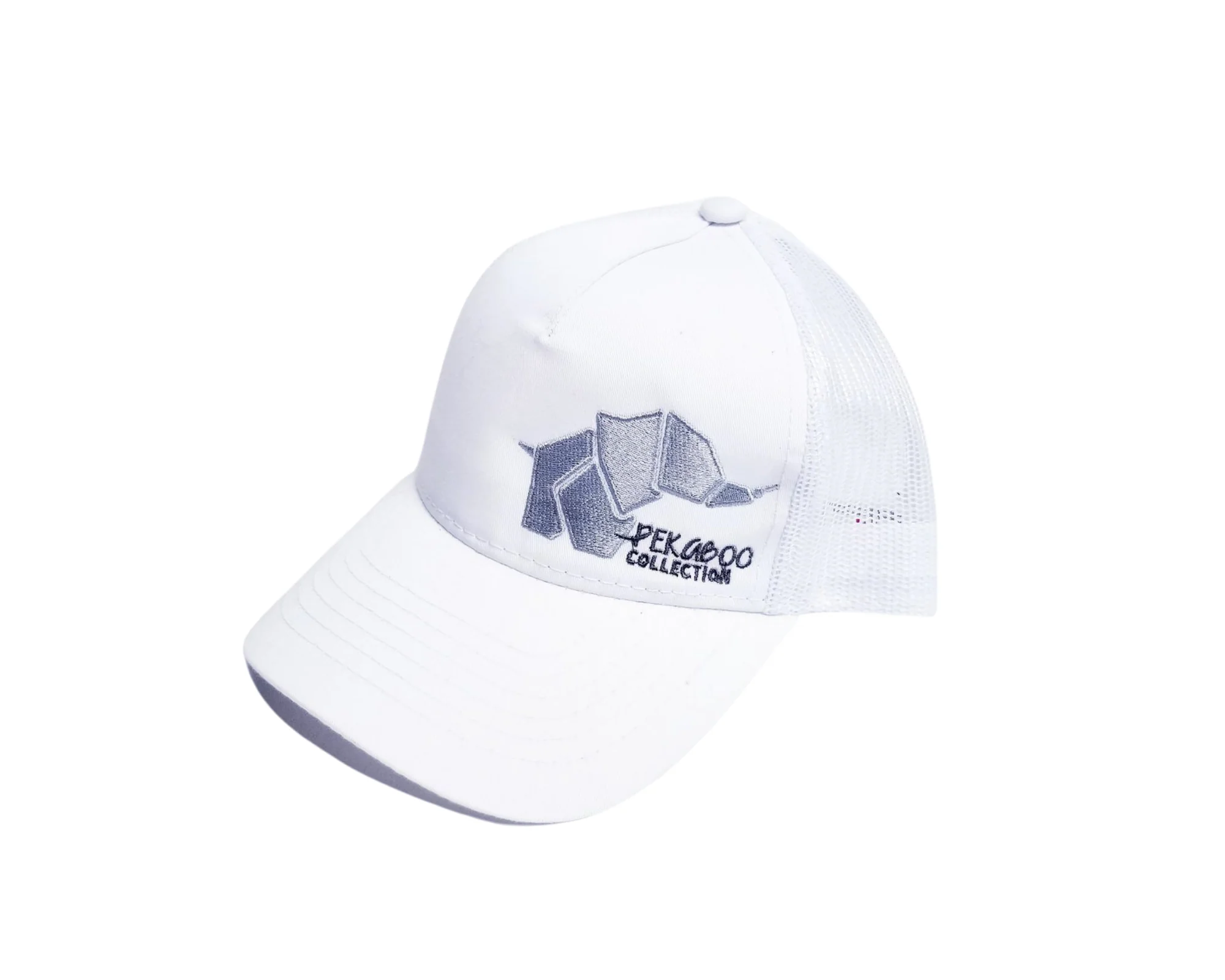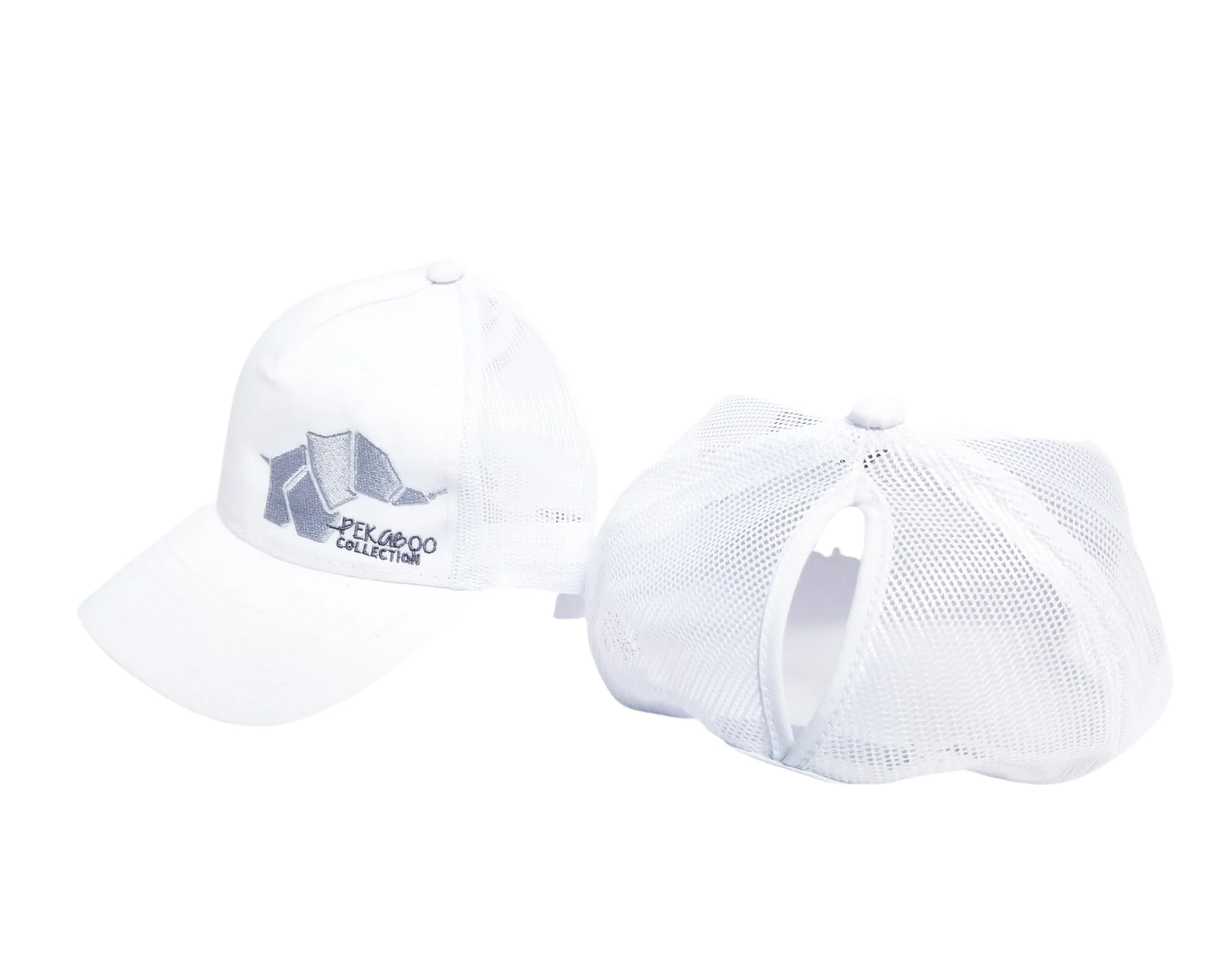 Casquette blanche pour femme avec ouverture pour chignon – Logo gris