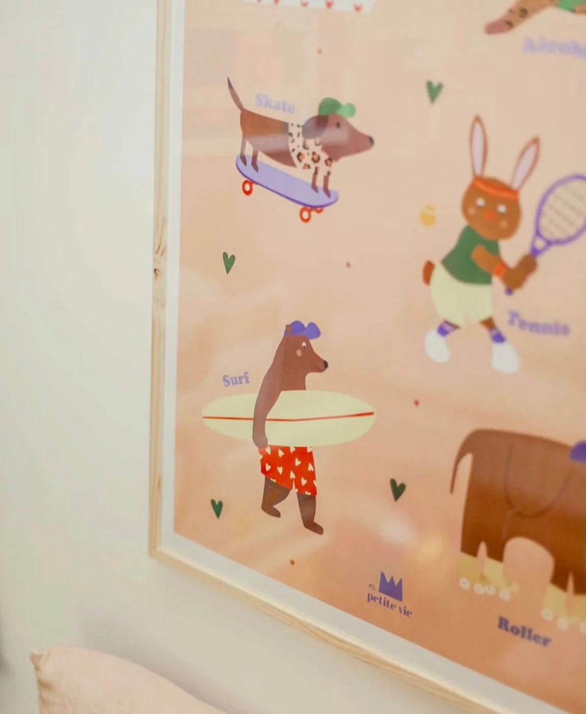 Découvrez notre affiche pédagogique « Les Sports » pour faire découvrir à votre enfant une variété d’activités fun et ludiques ! Le sport, c’est la santé et c’est encore plus fun quand ce sont nos animaux préférés qui nous font la démo 😻