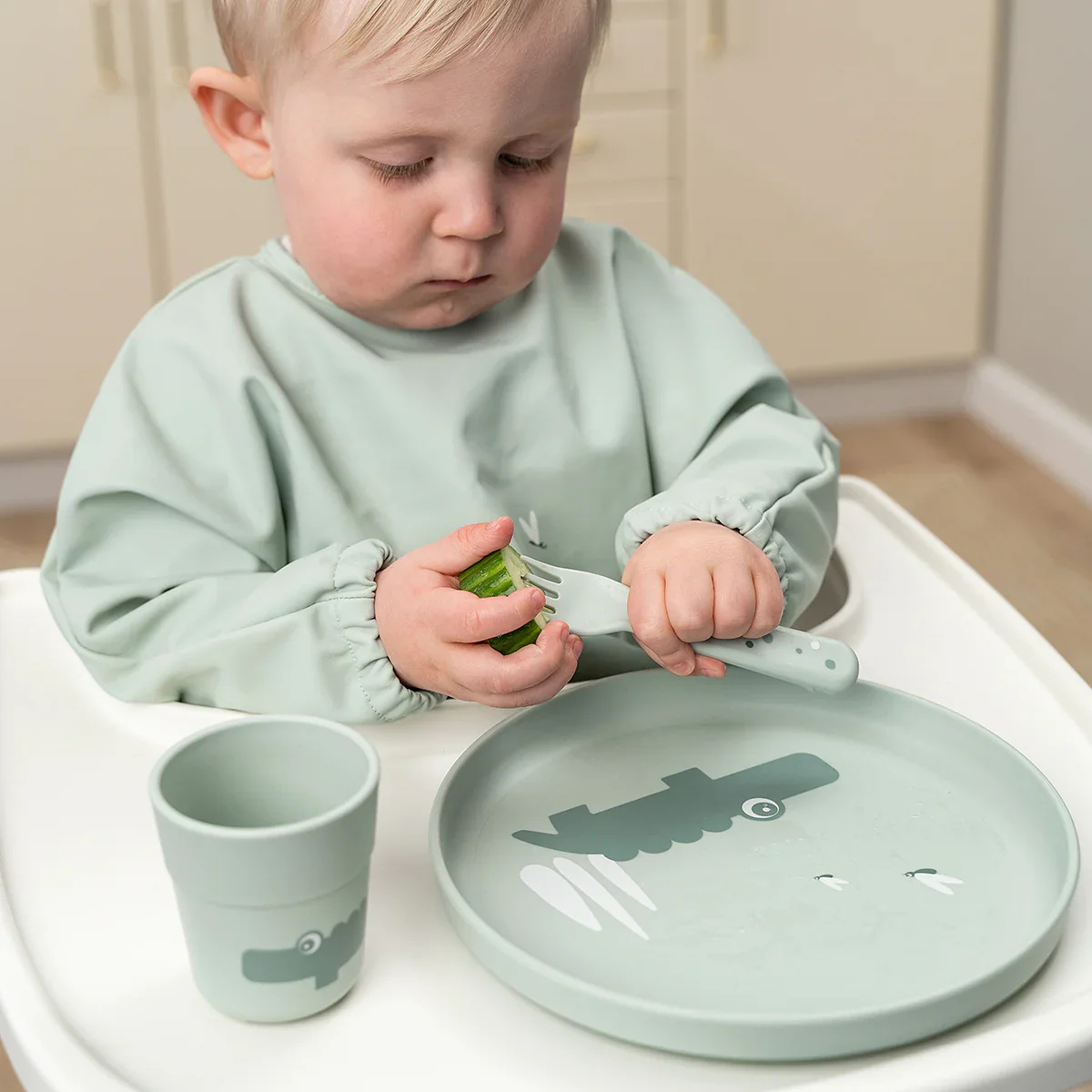 Assiette ventouse en silicone stick & stay – oiseau – vert