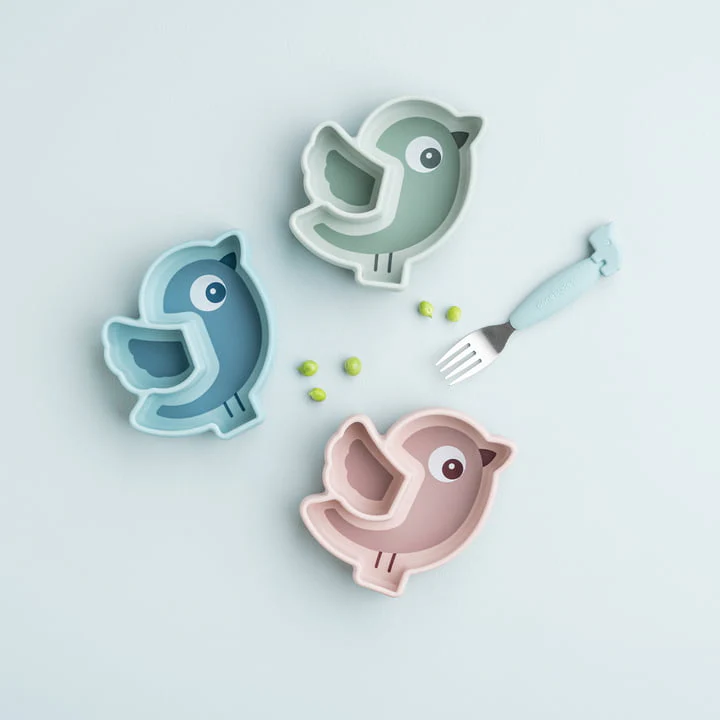 Assiette ventouse en silicone stick & stay – oiseau – vert