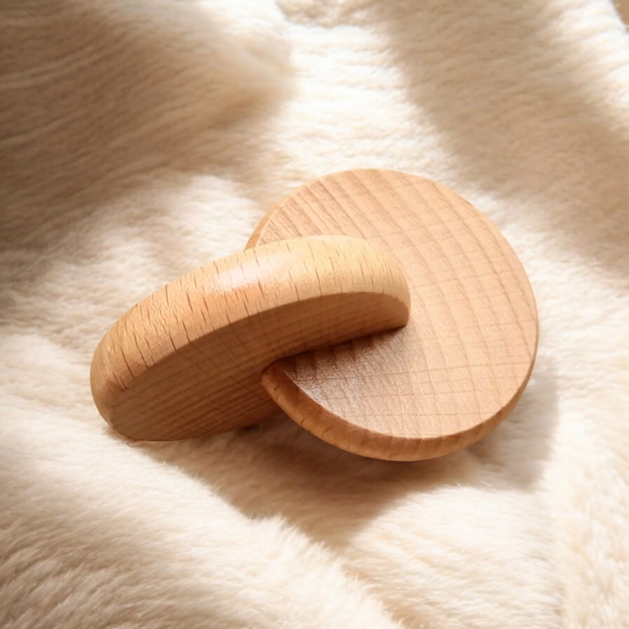 - Jouet d’Éveil en Bois : Un jouet en bois naturel aux formes douces, conçu pour captiver l’attention du bébé et encourager l’exploration tactile.