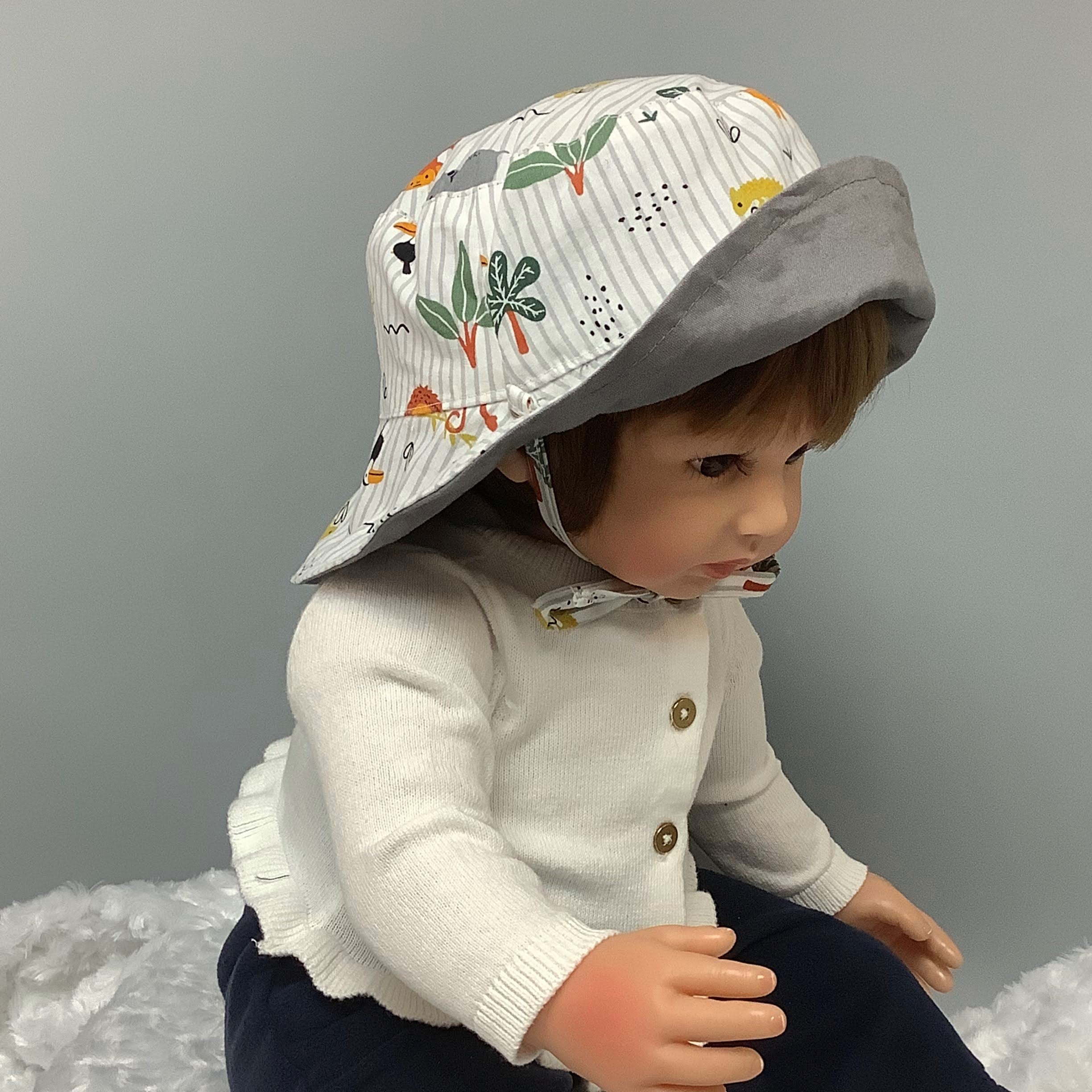 Chapeau en coton reversible pour enfant.