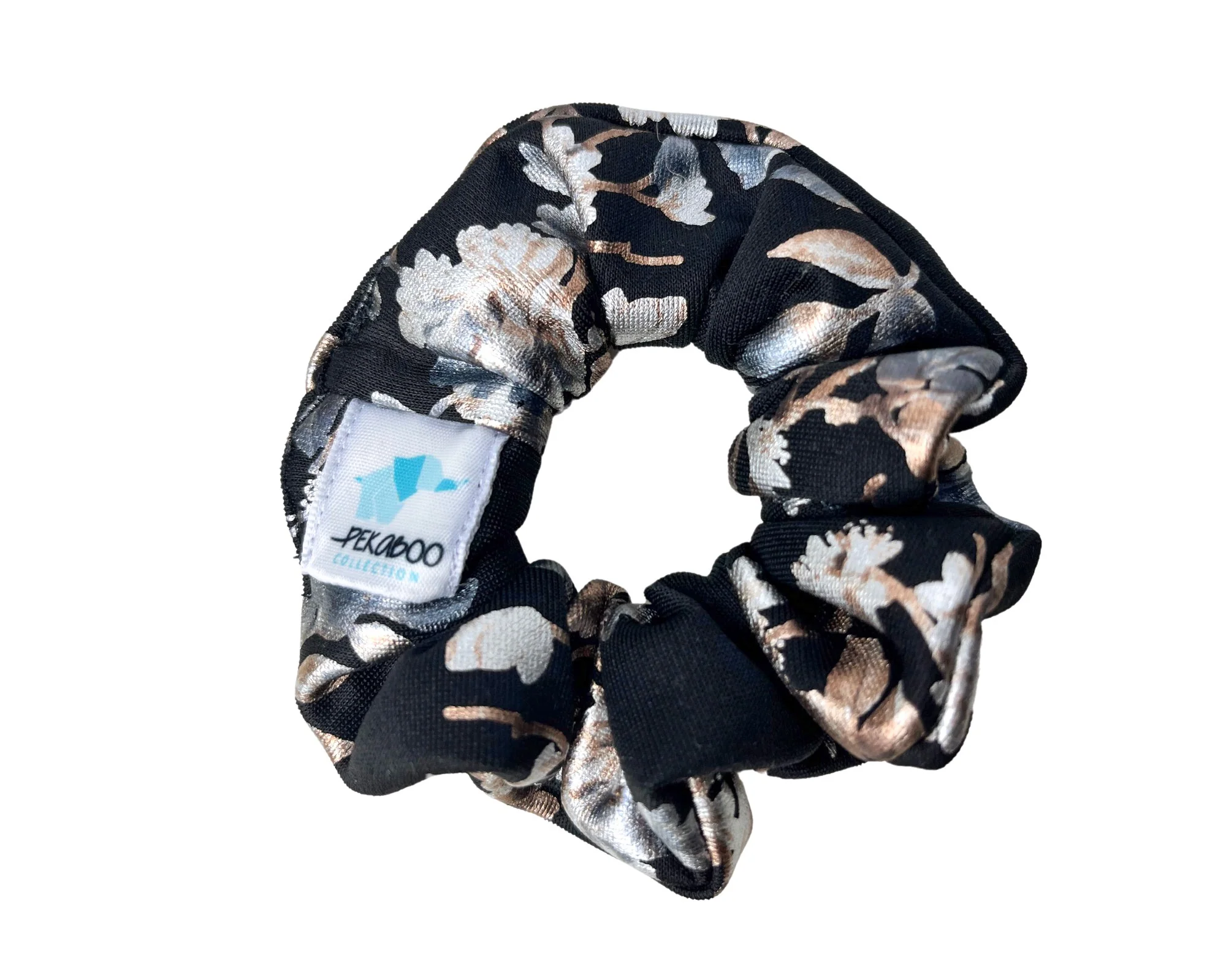 Chouchou élastique pour cheveux – Fleuri noir métallique