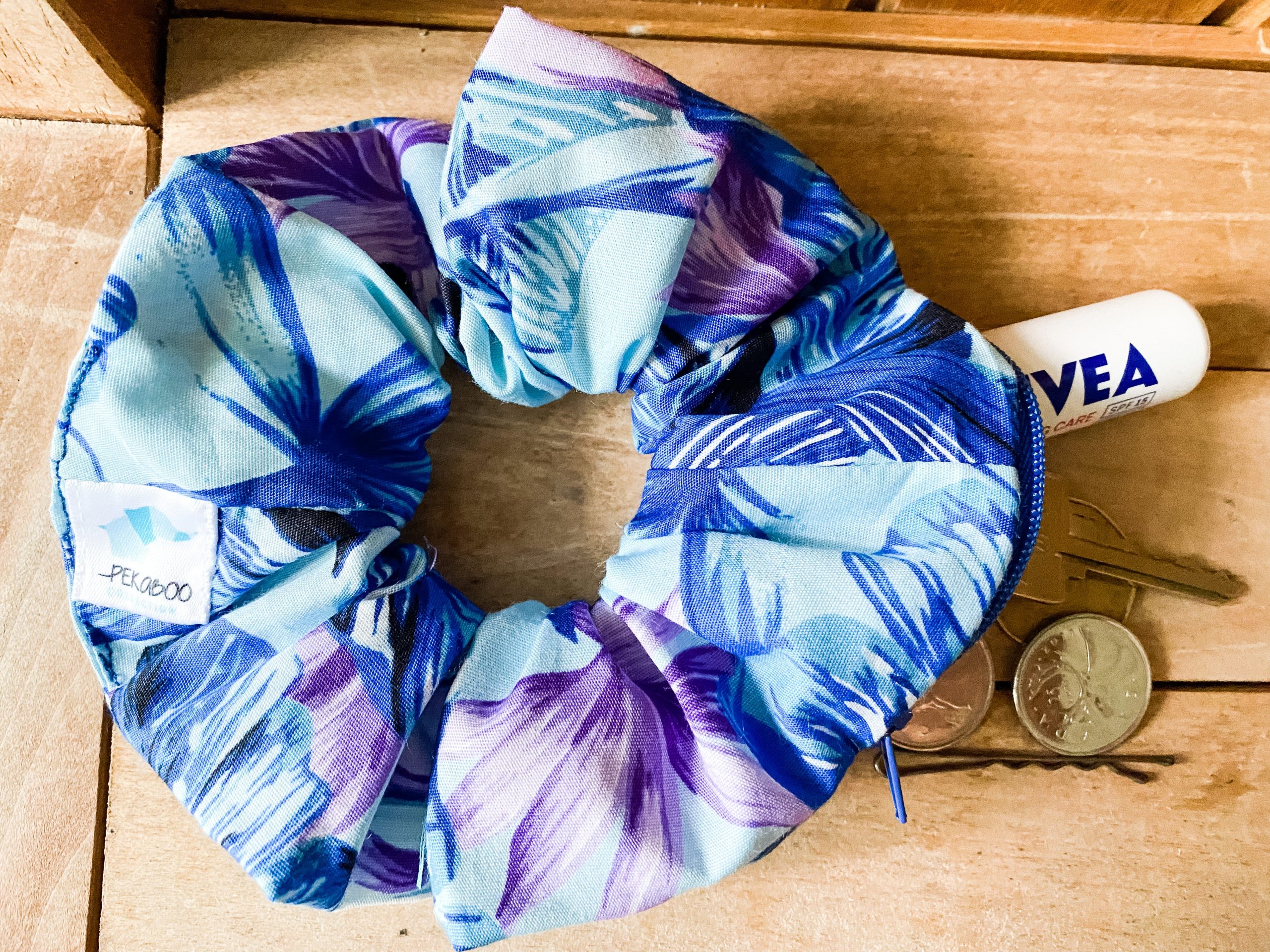 Les chouchous à pochette on été conçus pour vous épargner de toujours traîner votre porte monnaie ou votre sac à main lors de vos sorties. Coton Pratique pour y mettre: -Vos clés -Votre baume à lèvre -Votre monnaie -Autres Dimensions : 14 cm de diamètre Laver à la main Fait au Québec/ Pekaboo Collection