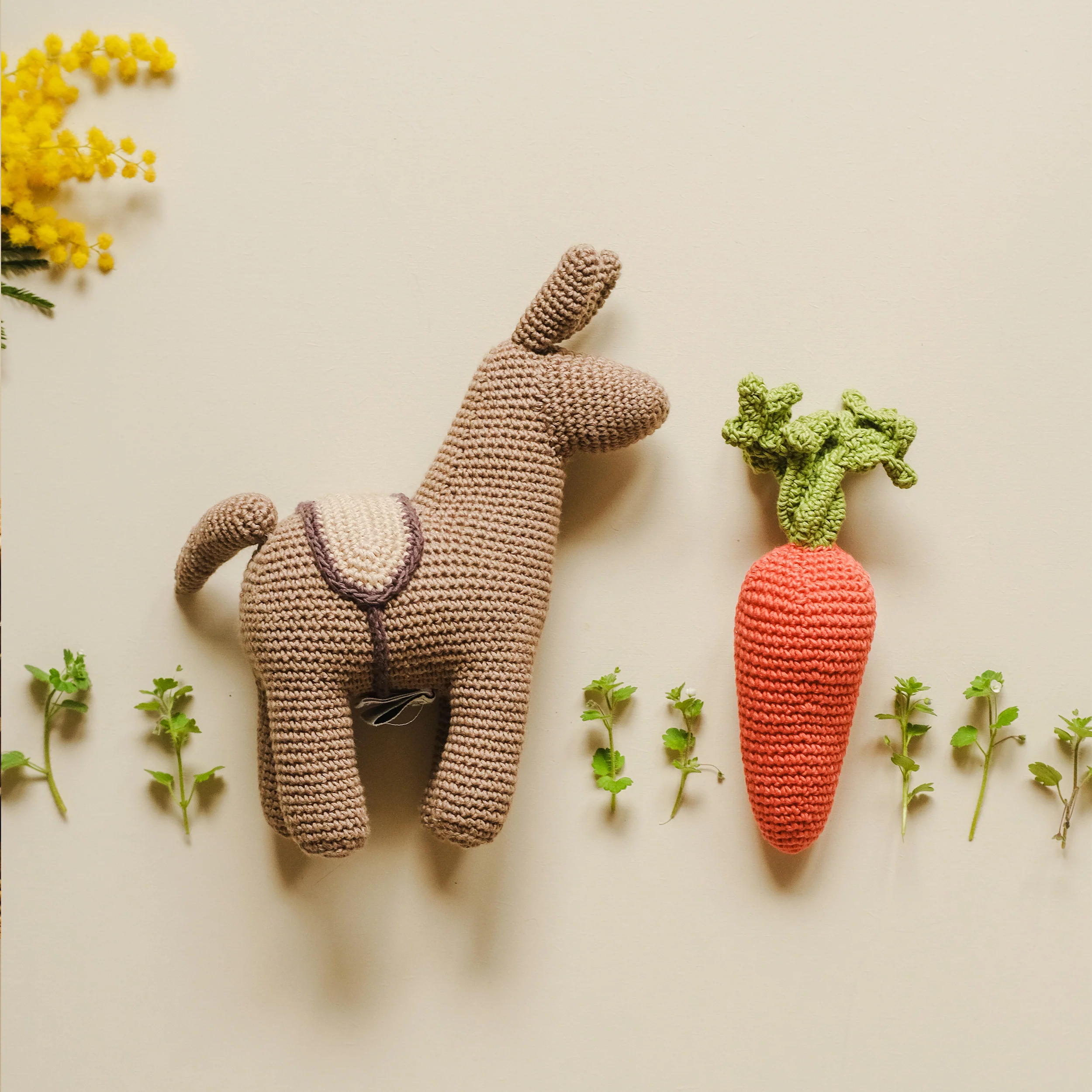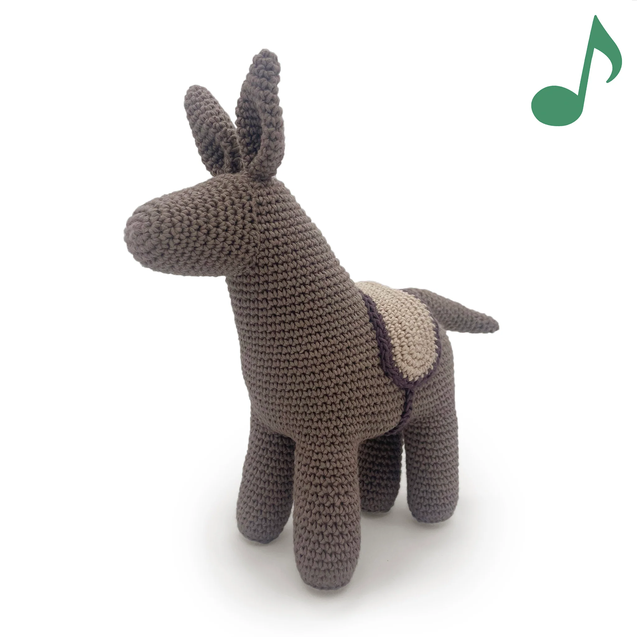 Coffret Donkey 🥕🫏 hochet et boite à musique en crochet 100% coton bio