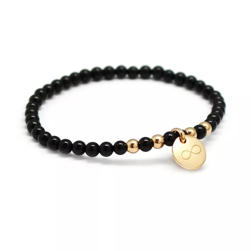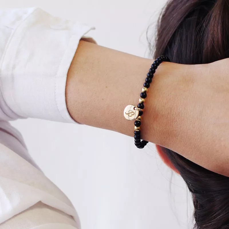 Affichez fièrement votre poignet avec notre bracelet mini charm et perles Agates noires.