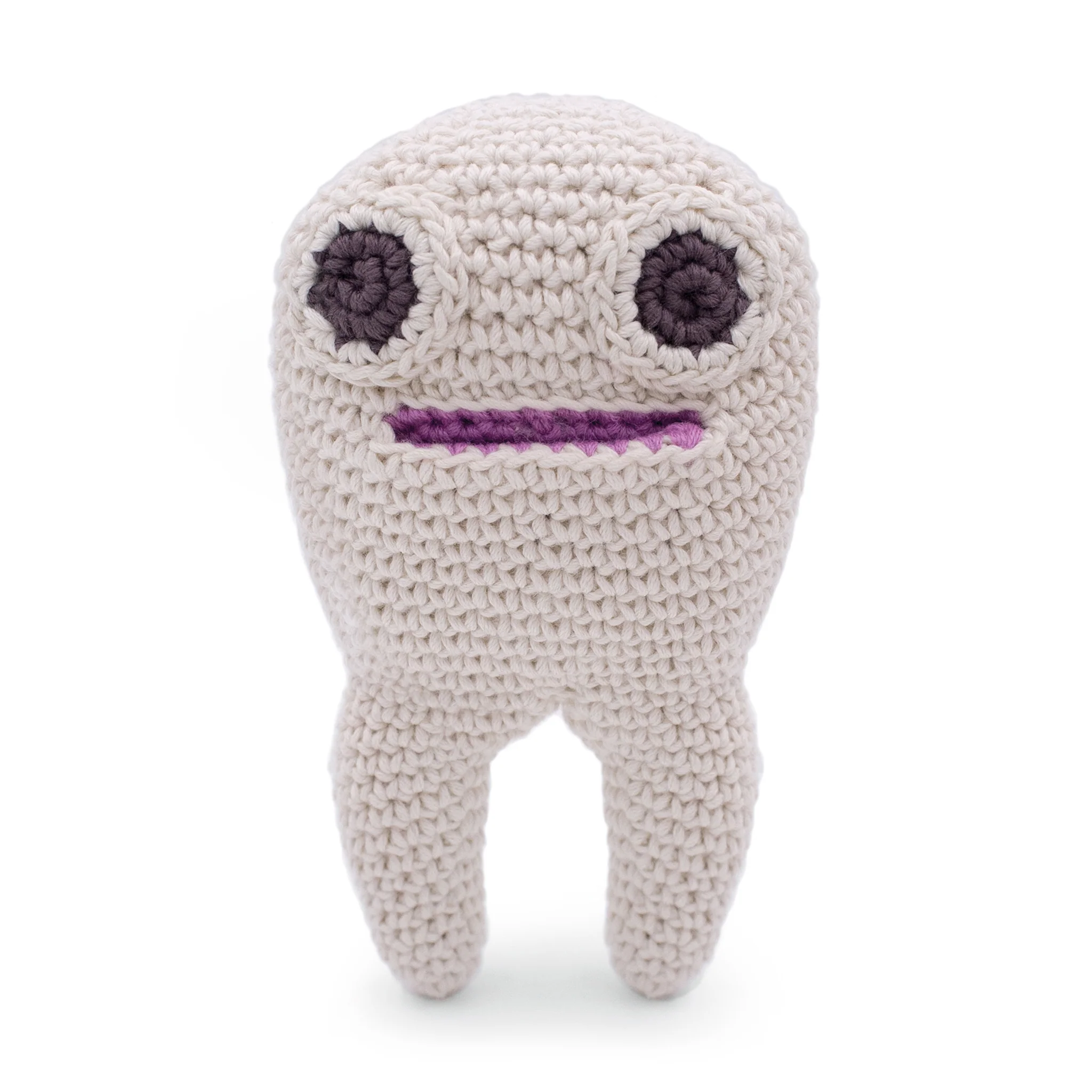 - Un teether tout en originalité Myum qui ravira vos enfants : en forme de dent, il s’utilise dès la naissance comme un anneau de dentition – permet de masser les gencives enflées et d’apaiser la douleur quand les dents de lait commencent à pousser, mais également de récupérer les pièces que la petite souris vient déposer sous l’oreiller à chaque nouvelle dent de lait tombée ! Fait à la main au crochet, il est un parfait cadeau de naissance ou un cadeau de consolation, une fois la première dent partie.