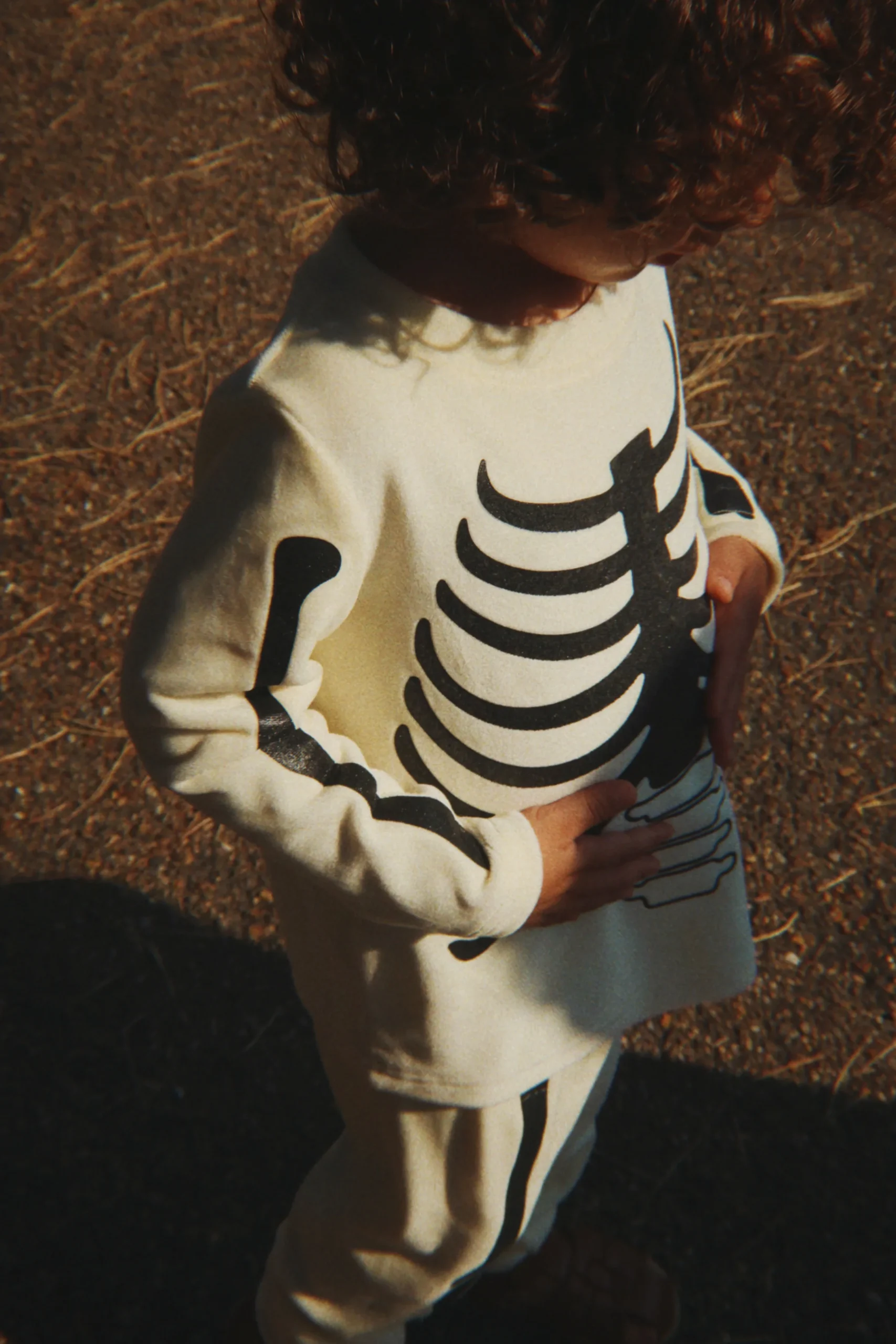 Faites briller la nuit d’Halloween avec ce costume deux pièces souple orné d’un imprimé squelette noir à paillettes sur le devant. Confortable et facile à enfiler, il permettra à votre enfant de se transformer en petit squelette scintillant le temps d’une fête ou d’une soirée déguisée.