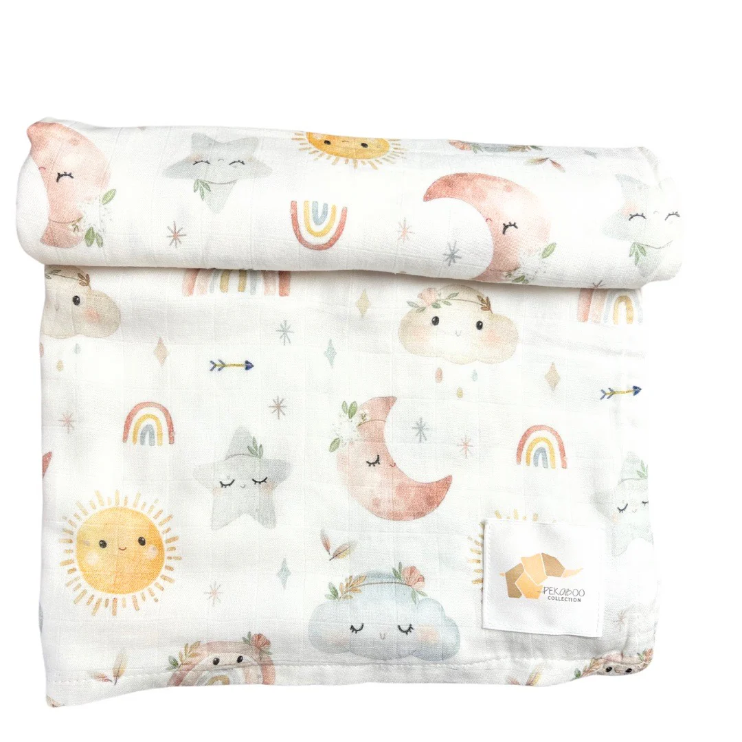Nos couvertures mousselines sont douces et légères pour emmailloter bébé. Elles offrent une douceur incomparable et une respirabilité maximale, parfaites pour toutes les saisons.
