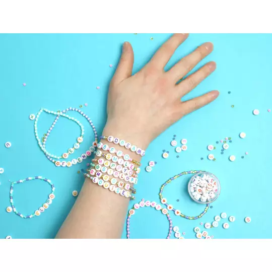 Tout est inclus dans ce kit : 1 pinceau, 6 petits pots de peinture acrylique, dont une couleur fluo, 6 décos et 1 cordon à découper.
