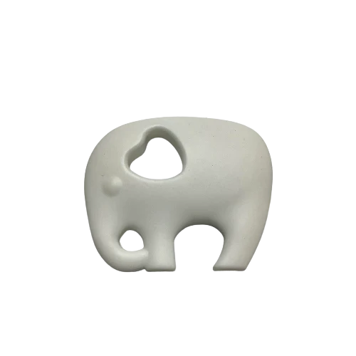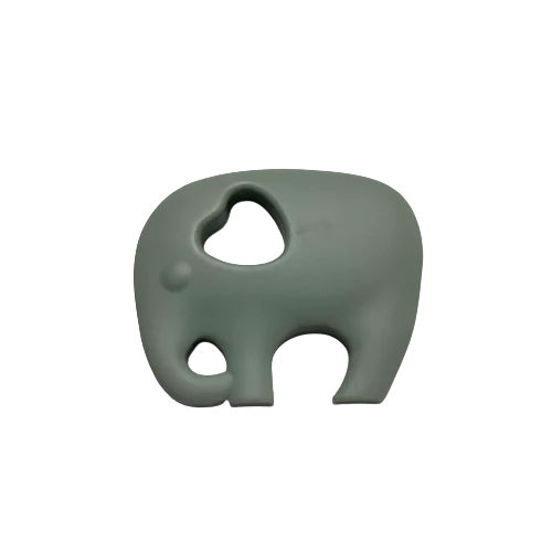 Éléphant de silicone sans odeur. Il aide à soulager les douleurs causées par la dentition de bébé. Ce jouet peut remplacer la suce au bout de l’attache suce.