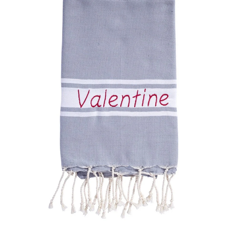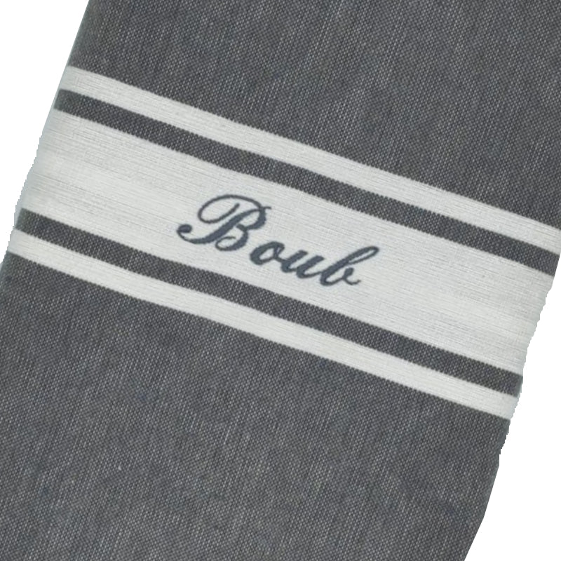 Le petit plus qui fera de vous la reine ou le roi de la plage, vous pouvez personnaliser votre fouta avec un prénom, des initiales ou un court texte de votre choix qui sera brodé dans notre atelier en Ile de France. La broderie sera située au centre de la bande blanche.