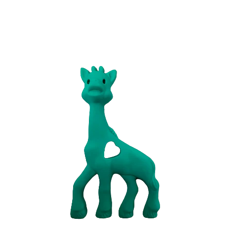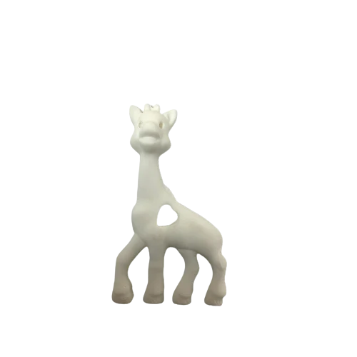 Giraffe de silicone sans odeur. Il aide à soulager les douleurs causées par la dentition de bébé. Ce jouet peut remplacer la suce au bout de l’attache suce.