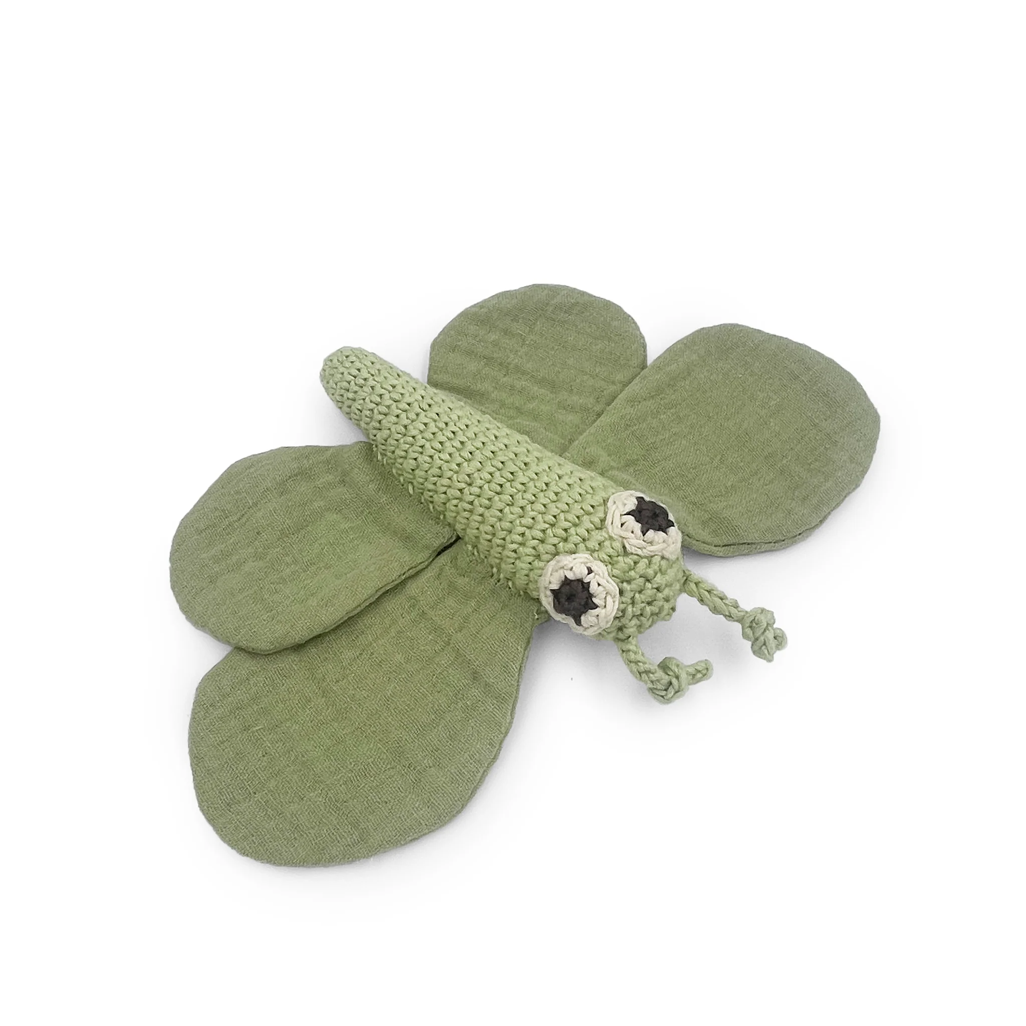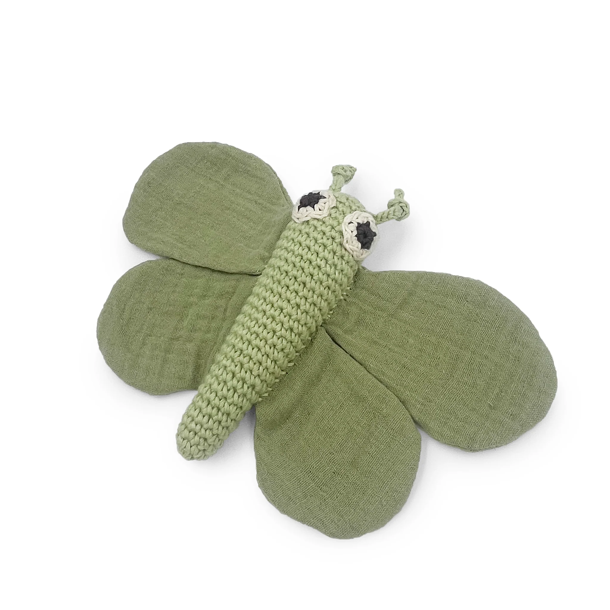 Hochet & Doudou Papillon Vert en crochet 100% coton bio
