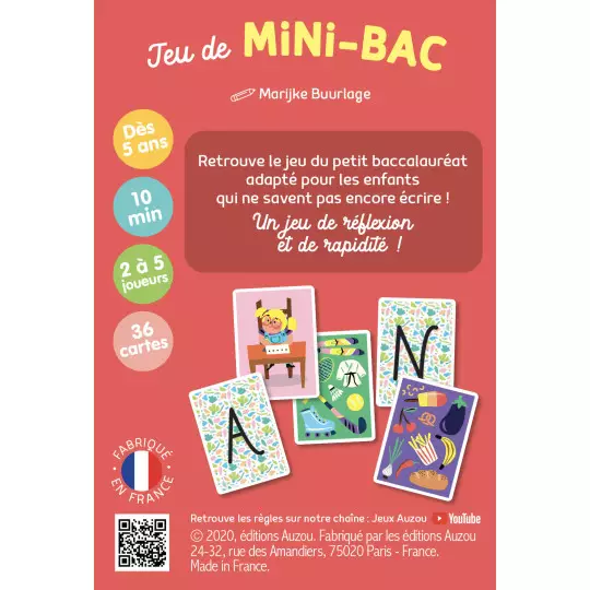 Une adaptation du petit baccalauréat en jeu de cartes pour les enfants qui ne savent pas encore écrire. Simple et rapide !
