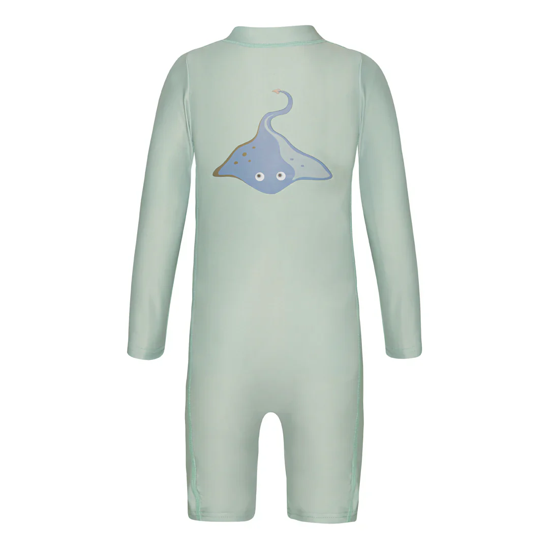 La salopette est pratique aussi bien pour les petits que pour les plus grands. Il y a une fermeture éclair sur le devant, ce qui facilite l’enfilage et le retrait pour l’enfant. Il y a un morceau de tissu supplémentaire à l’intérieur de la fermeture éclair pour qu’il n’irrite pas la peau de l’enfant. Le maillot a une coupe étroite comme un maillot de bain normal, ce qui le rend agréable à porter aussi bien mouillé que sec. La combinaison a des manches longues et les jambes sont légèrement plus longues pour protéger autant de peau que possible des rayons nocifs du soleil. Il y a suffisamment de place pour une couche de bain.