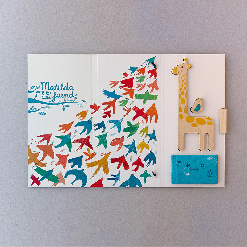 Mathilde la girafe prête main forte au petit oiseau pour faire son nid.