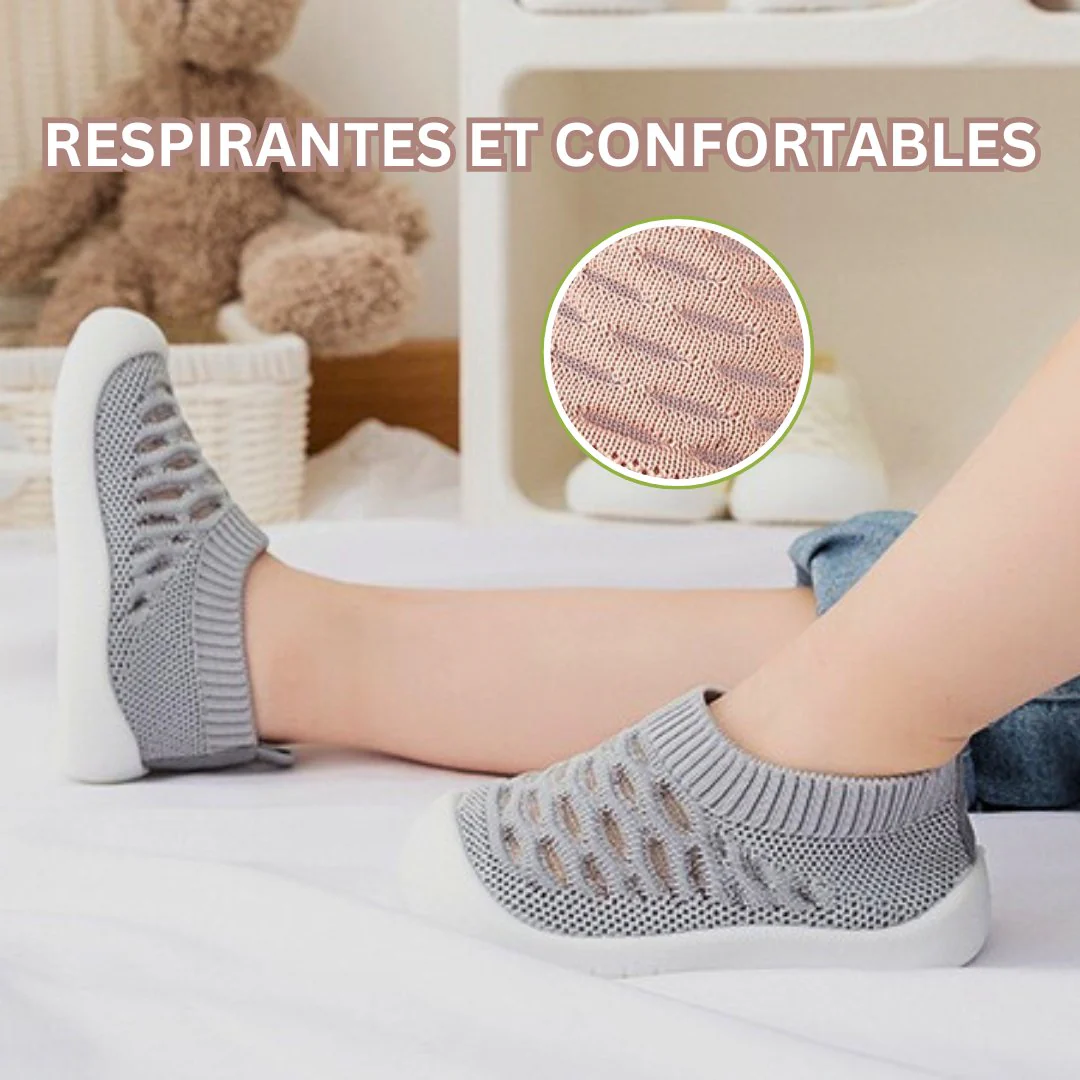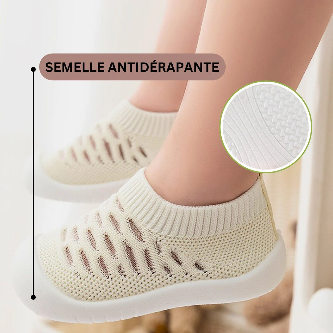 Laissez votre bébé faire ses premiers pas en toute sécurité pour développer sa motricité grâce à la semelle en caoutchouc antidérapante. Le bas de la semelle enveloppe bien le pied pour protéger les orteils contre les coups.