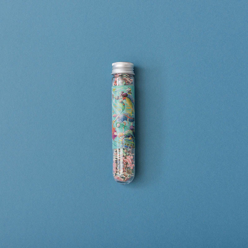 Un micropuzzle de 150 pièces de sirènes au fond de la mer. Présenté dans un tube, il est idéal pour faire un petit cadeau et le transporter dans sa valise.