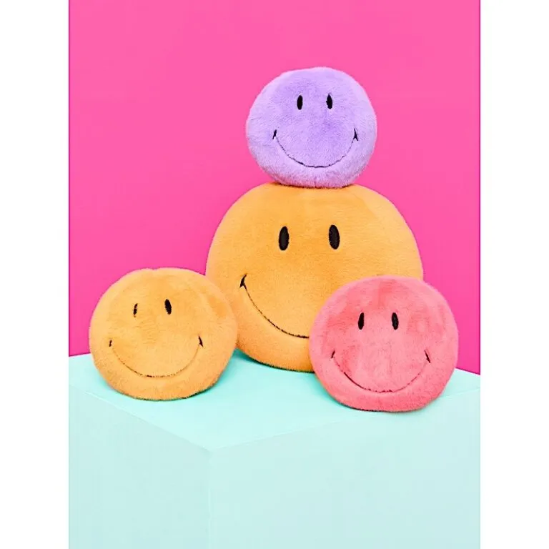 Découvrez Smiley 13cm Fuzzy Corail par Bon Ton Toys. Peluche douce et tendance, parfaite pour enfants et collectionneurs.