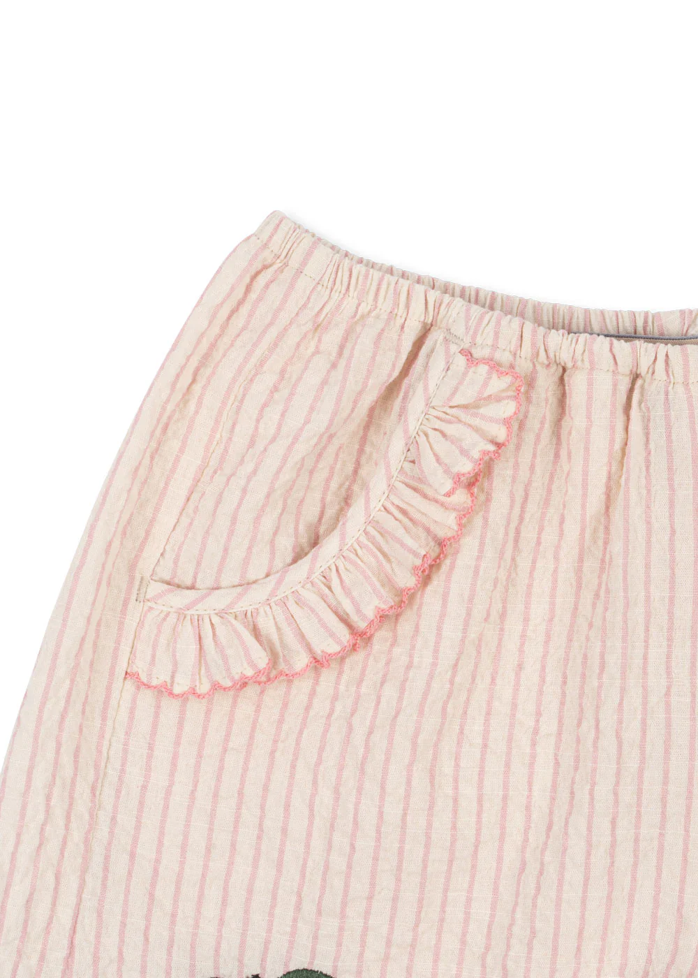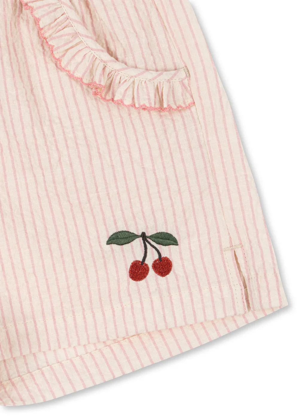 Short confectionné en seersucker doux avec des détails à volants.