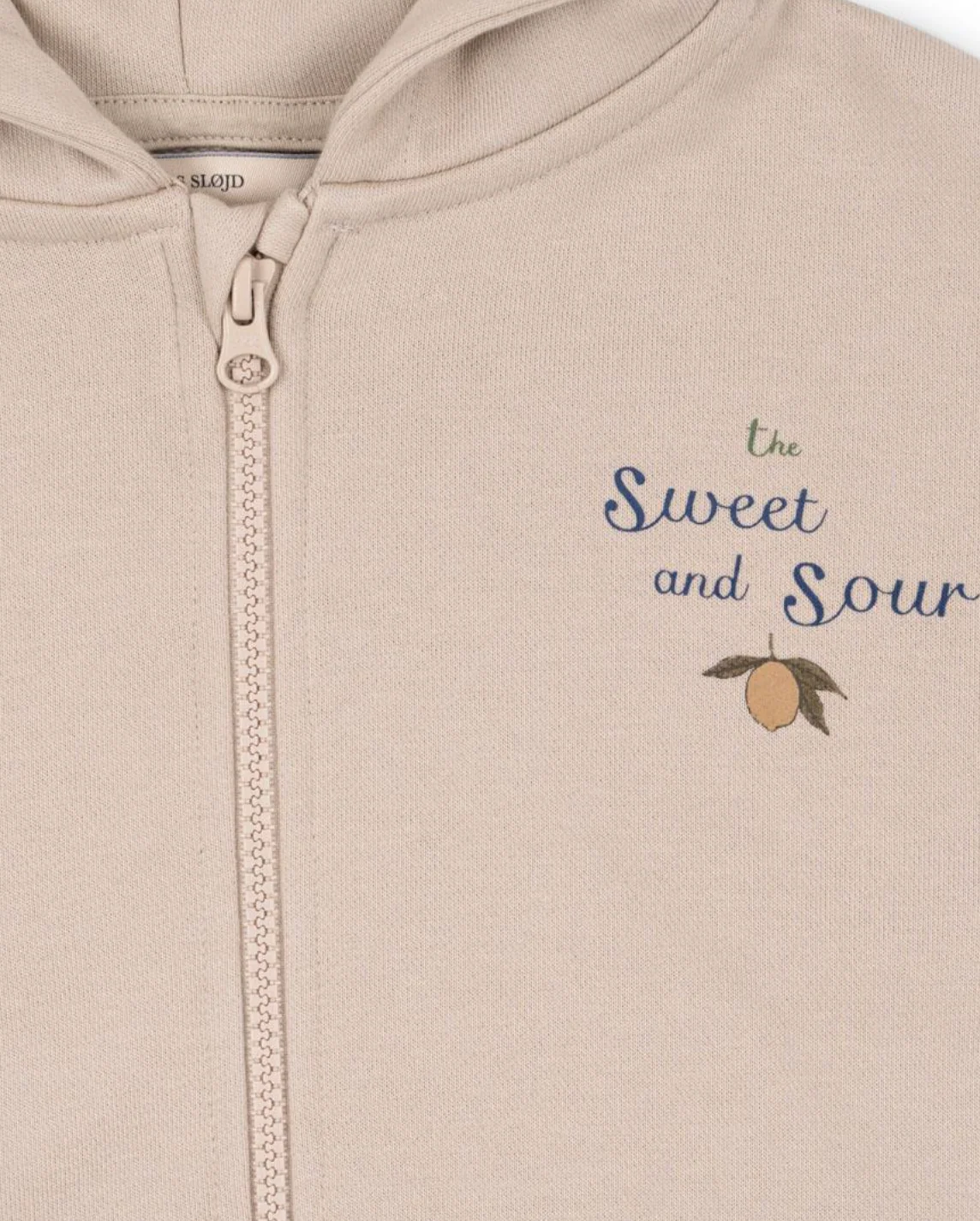 Sweat à capuche doux en coton biologique avec une touche de stretch. Dispose d’une fermeture à glissière complète sur le devant et d’une capuche douce